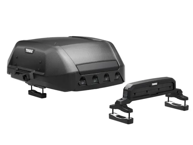 The Thule OnShore fishing rod carrier allows you to transport fully rigged rods on your vehicle. This carrier can safely and securely transport up to 4 fully rigged fishing rods, ready to cast. The durable shell helps to protect your valuable tackle reels while padded front mounting system secures your rod safely when driving.